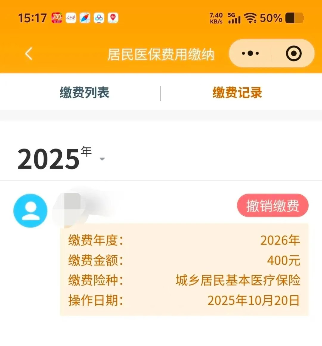 6. 在居民医保费用缴纳页面,点击缴费记录可查看历史缴费记录。