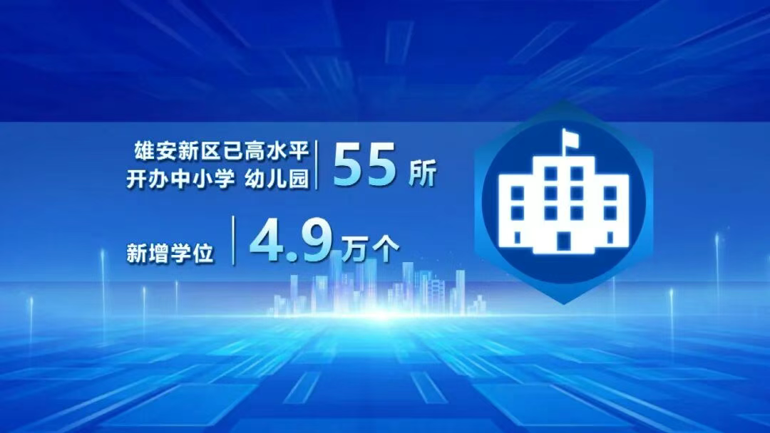 十四五"时期,雄安新区现代教育体系加速构建,首批疏解高校全面开工建设,第二批疏解高校确定项目选址,第三批疏解高校正在有序启动。雄安新区已高水平开办中小学、幼儿园55所,新增学位4.9万个。