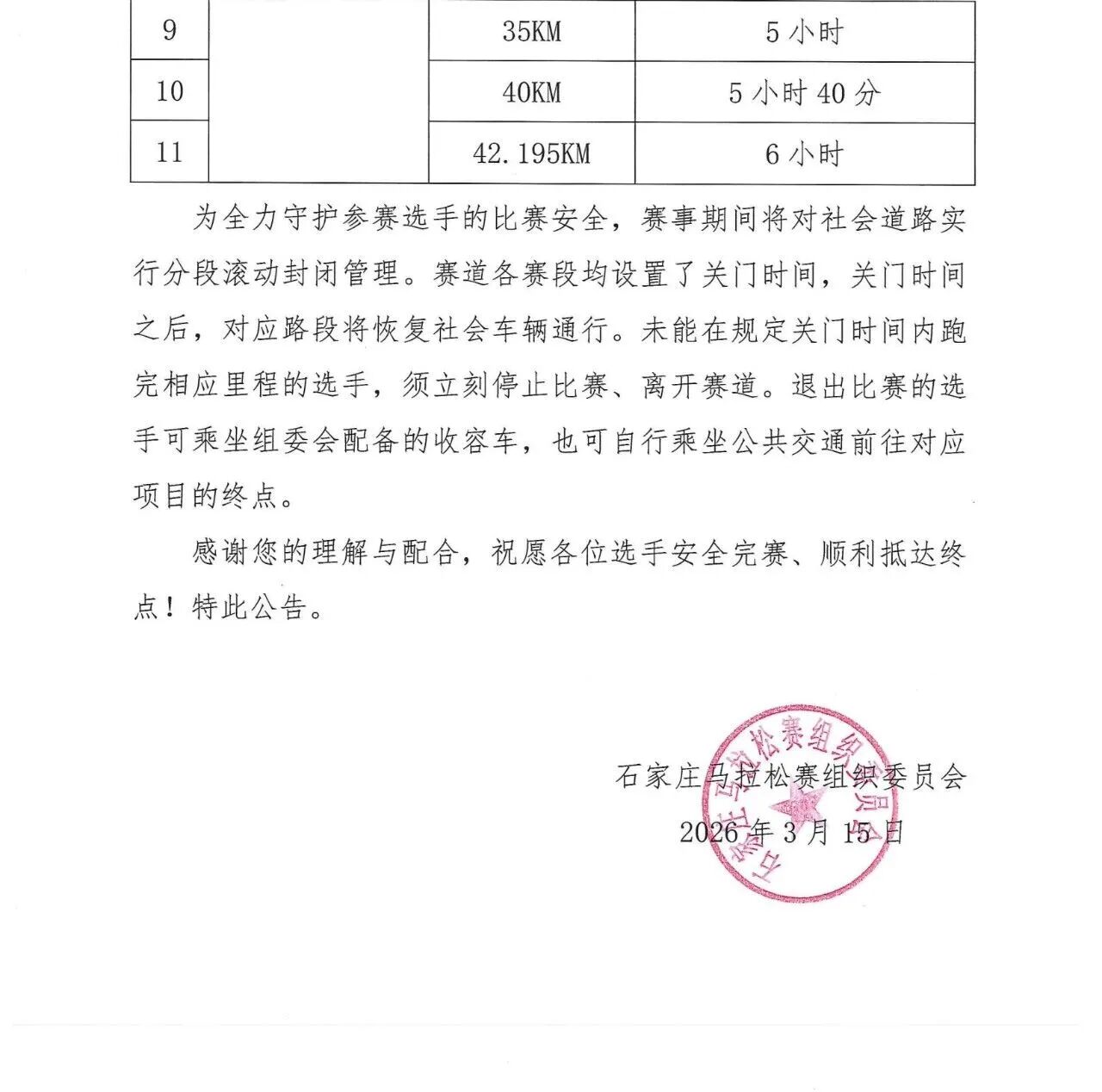 关于调整君乐宝2026石家庄马拉松赛竞赛规程的公告