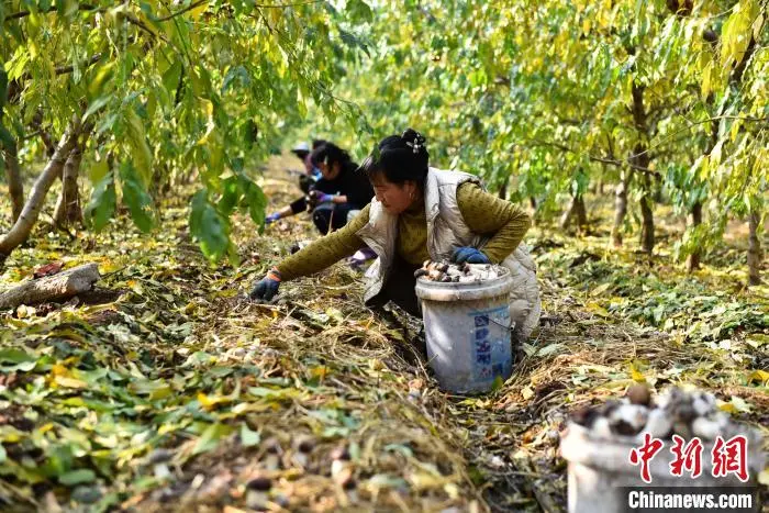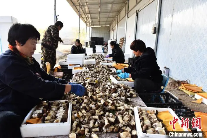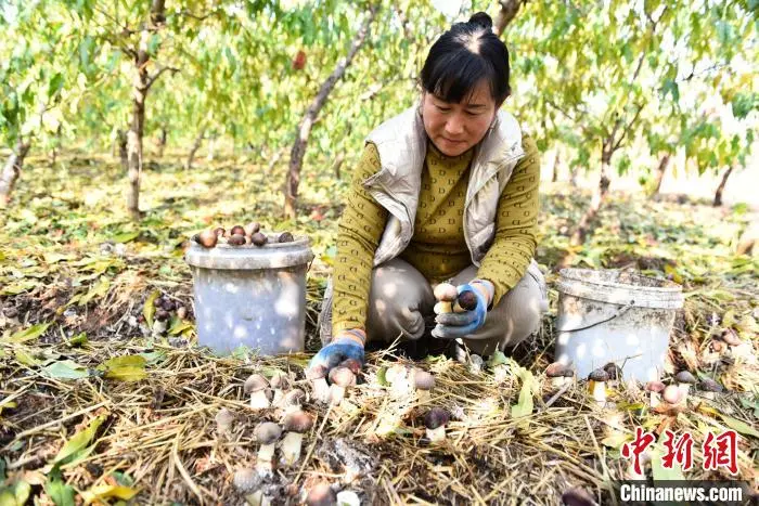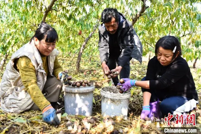 11月2日,在河北省秦皇岛市青龙满族自治县肖营子镇西庄村蟠桃林内,农户正小心地将松茸采摘、装筐。蟠桃林下一朵朵松茸破土而出,露出了红褐色的菌盖和白色的菌柄,散发出阵阵香气。当地充分发挥资源和气候优势,通过“企业+合作社+农户”模式,大力发展林下经济,借助蟠桃、板栗收获后的“空档期”,引导农民种植林下松茸,为农民增收开辟了新路径。