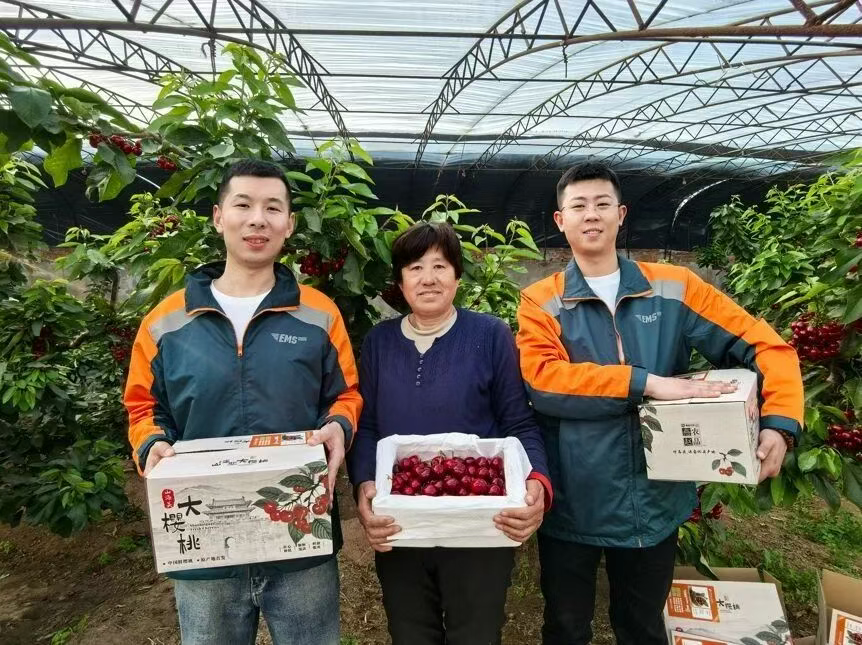 秦皇岛市邮政分公司员工帮助农户寄递樱桃