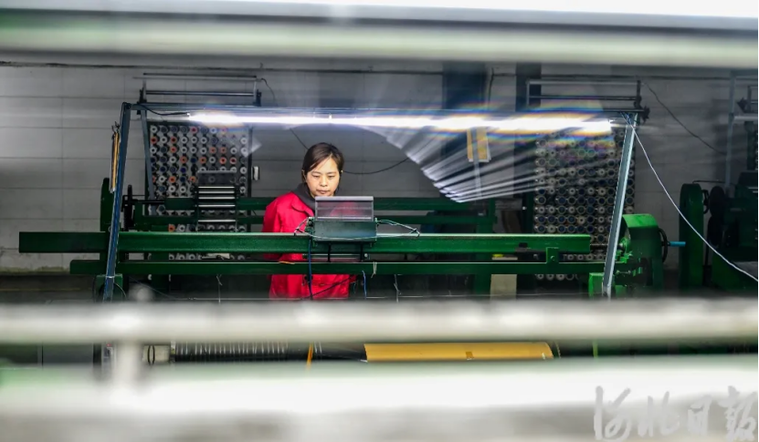 近日,在衡水市安平县一家丝网企业生产车间,工人在检查织网机运行情况。河北日报记者 东宇摄