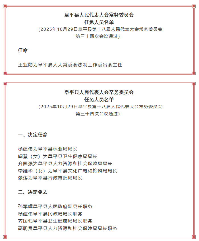 阜平县人大常委会任免人员名单