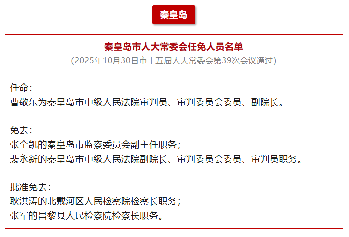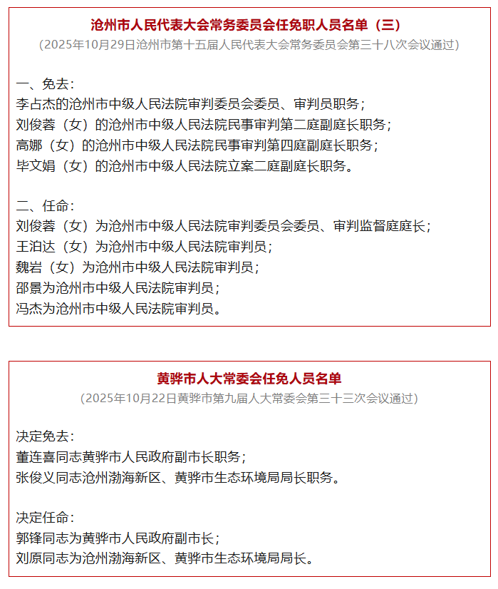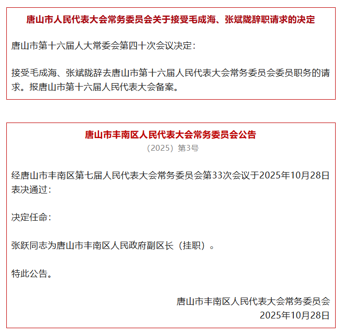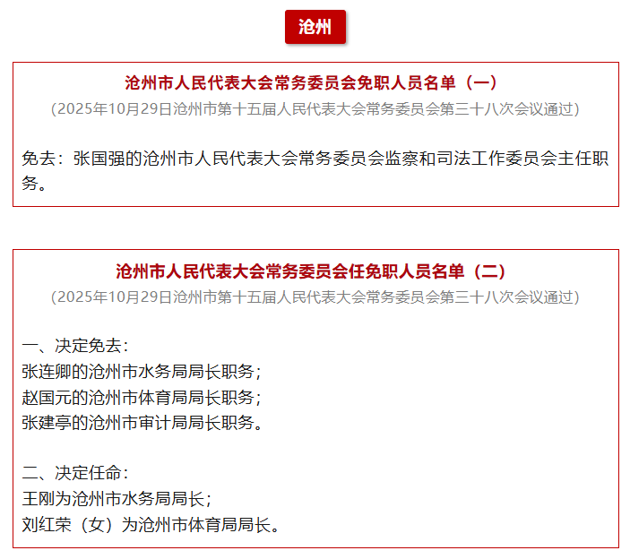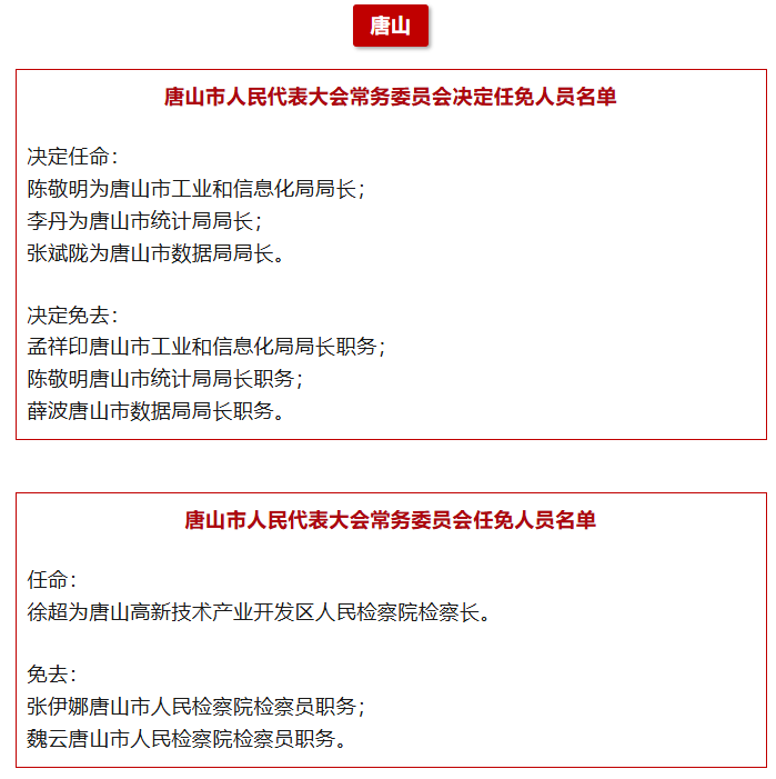 河北8市最新任免!唐山、沧州、邯郸……