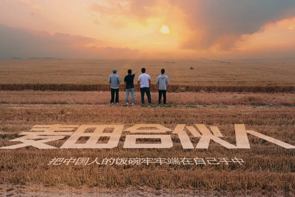四个人在田间合影,从左到右分别为叶松林、郝展宏、冯小杰、蔡东玉。