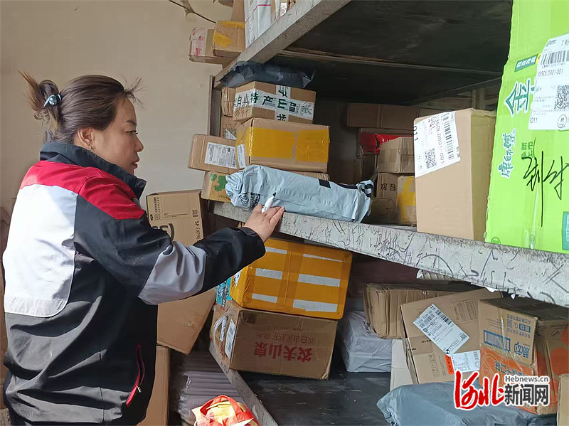 4月10日,刘莹正在整理快递。河北日报记者 张 辉摄