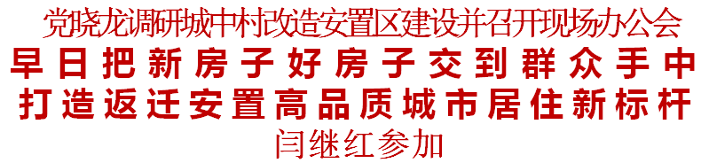 党晓龙指出,城中村改造是我市坚持人民至上、满足人民群众美好生活需要的重大民生工程。各级各部门要担当作为,同心同力推进安置区建设。施工单位和各级各部门要按照规划导则进行“回头看”;要把工程质量放在首位,用心做好细节,彰显央企品牌;要严格按照日期竣工交付,提前启动回迁安置相关工作;要保证群众知情权,倾听群众意见,接受群众监督,提高群众满意度;要把工程安全牢牢抓在手上,严格管理,落实责任;要优化规划设计,突出外立面打造,突出公共空间打造,注重配套设施建设,注重运营管理,着力打造返迁安置高品质、城市居住新标杆,向人民群众交出一份满意的民生答卷。各级各部门要在服务保障好安置区建设同时,统筹做好疫情防控、“三夏”生产、防汛抗旱、大气污染防治等工作,把重大风险防范工作做实做细做好,推动经济持续健康发展和社会大局和谐稳定,以实际行动迎接党的二十大胜利召开。