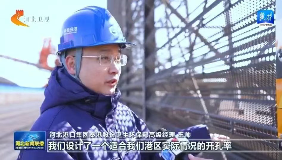 我们现在整体设计的网高是23米,然后通过风洞实验,我们设计了一个适合我们港区实际情况的开孔率,这样可以更好地降低我们港口内风速,从而降低我们粉尘的产生,我们现在整体的抑尘率可以达到95%以上。