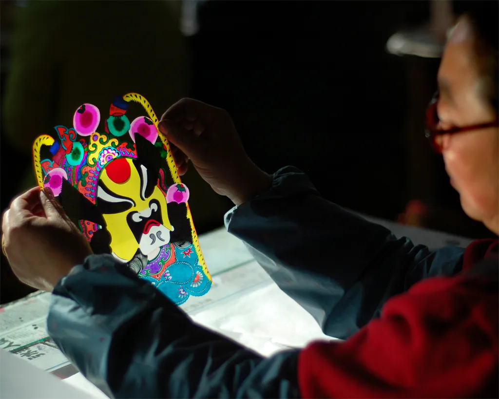 蔚县位于河北省西北部张家口市南,这座旧称“蔚州”的古城素有“京西第一州”的美称。位于蔚县西部的暖泉古镇是中国历史文化名镇,以泉水、集市、古建筑及民俗文化而闻名,这里有着全国唯一的阴刻为主、阳刻为辅、重彩点染式剪纸,在我国剪纸艺术的大家庭中堪称一枝独秀。蔚县剪纸的丰富样式也与当地的民俗文化密切相关——旧时,蔚县剪纸主要用作四时节庆与婚丧嫁娶时的窗饰,被当地人俗称为“窗花”。