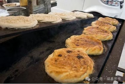 烧饼是一种邱县特色面食。它外皮酥脆,色泽诱人,一般呈金黄色。从制作原料来讲,主要有面粉、水、油、盐等基础材料,添加芝麻来增香。在口味上可以是原味,也可以是甜口或者咸口。其制作工艺包括揉面、擀制、烘烤等步骤,使得烧饼层次分明,口感香酥,让人吃了唇齿留香,是很受欢迎的日常小吃。