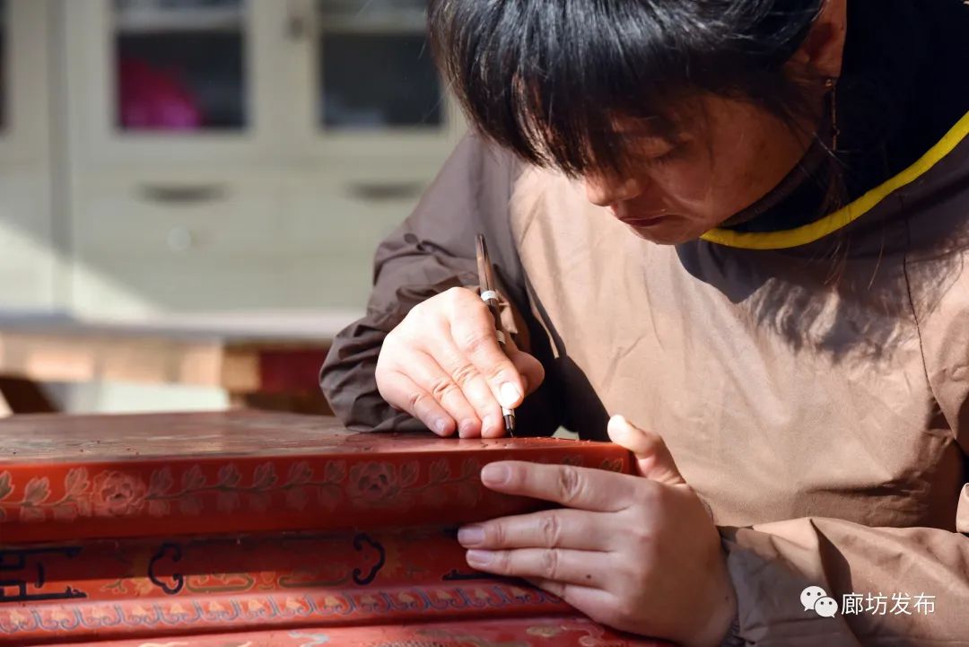 图为广阳区九州镇南汉村的手工艺人对漆器进行微雕处理。