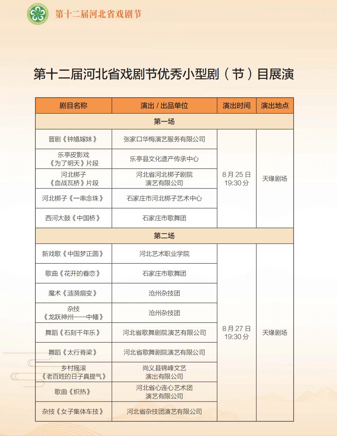第十二届河北省戏剧节优秀小型剧(节)目展演节目单。河北省文化和旅游厅供图
