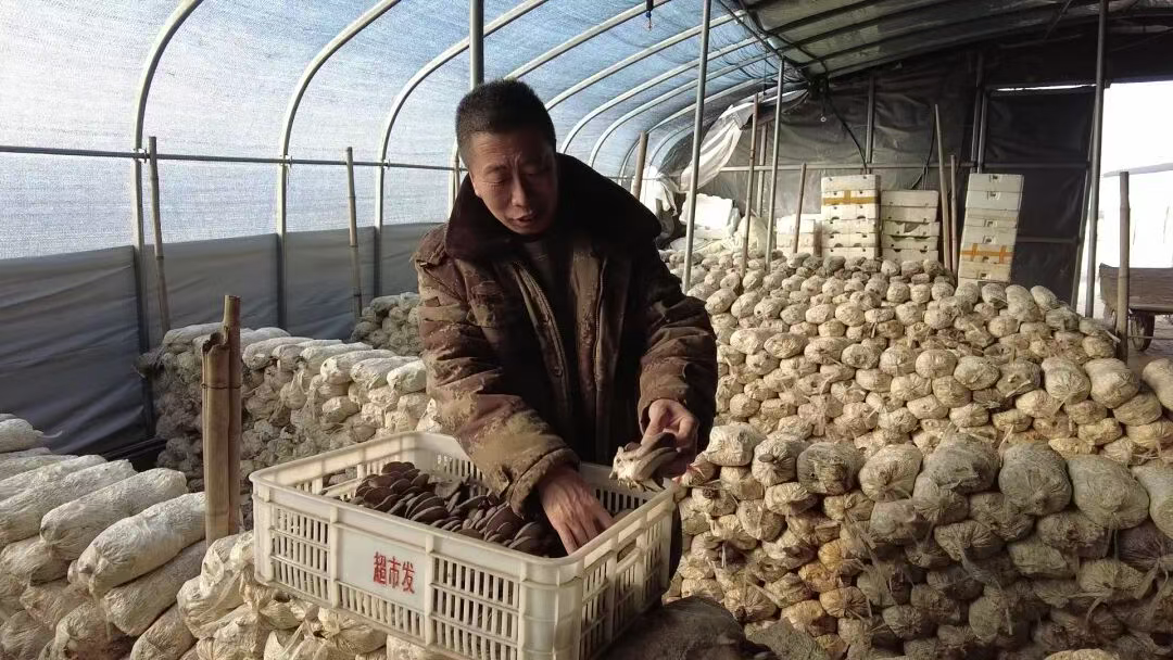 李文伏是当地远近闻名的蘑菇种植大户,眼前这数十个新式大棚,正是他扎根乡土的“致富阵地”。“咱们的大棚都是科学化管理,温度始终稳定在10-25℃的黄金区间,湿度控制在70%-80%,再加上定时喷水保湿和科学划袋通风,能给菌丝生长输送充足氧气。”李文伏向记者介绍,这套精细化种植技术让鲜菇从菌袋上架到采收仅需10多天,“短平快”的生产模式不仅缩短了生长周期,更提升了产业效益。