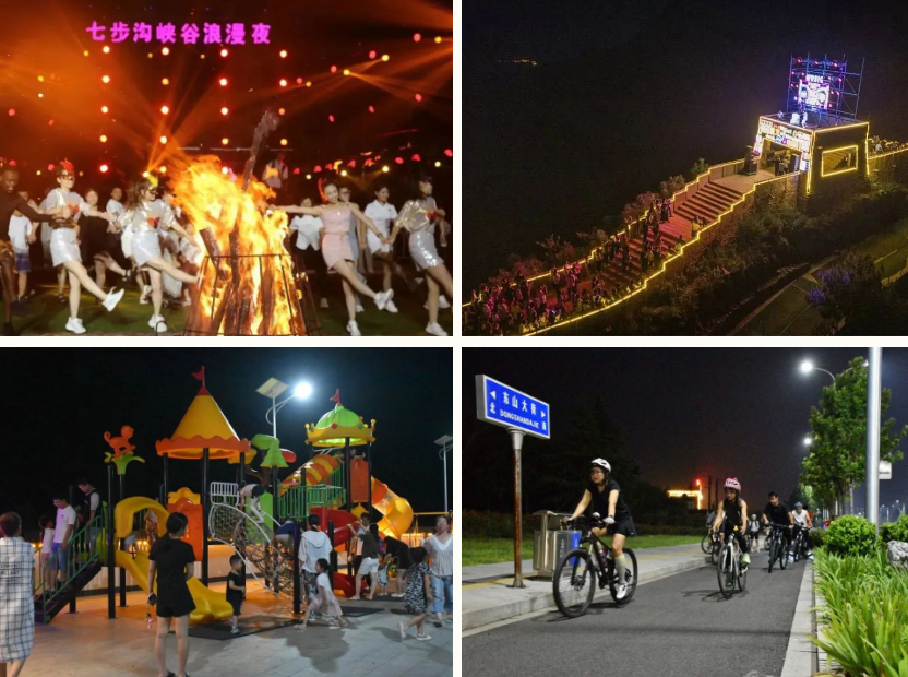 该线路以夜游、夜演等夜经济项目为支撑,打造夜间文旅消费集聚区。东太行景区推出的北高峰天脊长城山顶DJ、网红咖啡、免费旅拍、观影露营地等,打造落日狂欢基地;火遍大江南的古武当山夜爬持续火爆,云顶天宫、武当烤场等项目还在等你来体验;东山文化博艺园“东山灯火里”华丽回归,电音节、泼水节让时尚与传统交相辉映。