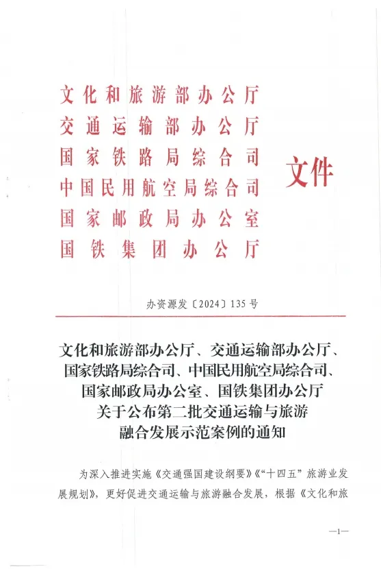 为深入推进实施《交通强国建设纲要》《“十四五”旅游业发展规划》,更好促进交通运输与旅游融合发展,近日,根据《文化和旅游部办公厅、交通运输部办公厅、国家铁路局综合司、中国民用航空局综合司、国家邮政局办公室、国铁集团办公厅关于开展第二批交通运输与旅游融合发展示范案例的通知》(办资源发〔2024〕111号),文化和旅游部、交通运输部、国家铁路局、中国民用航空局、国家邮政局、国铁集团共同遴选出第二批交通运输与旅游融合发展示范案例68个,我市威县“梨想之路”入选示范案例。