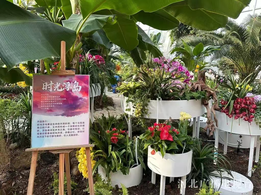 花卉展馆南馆新增两个大型花艺作品——“绿色旋律”和“时光浮岛”,每个岛既是独立的个体,又共同形成一个完整的生态系统。