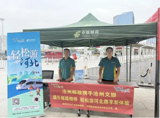 端午节期间,为了让游客更好地了解和使用这项服务,沧州城区寄递事业部在沧州高铁西站、沧州火车站出站口专门设立了咨询服务台。身着统一工作服的驻点人员主动向出站的游客介绍“轻松游河北”服务的具体内容、操作流程和优势亮点。对于有需求的游客,驻点人员还会全程协助其通过“邮直送”小程序下单。只需简单几步操作,游客就能完成行李寄递或寄存的订单,随后即可轻装上阵,开启愉快的沧州之旅。