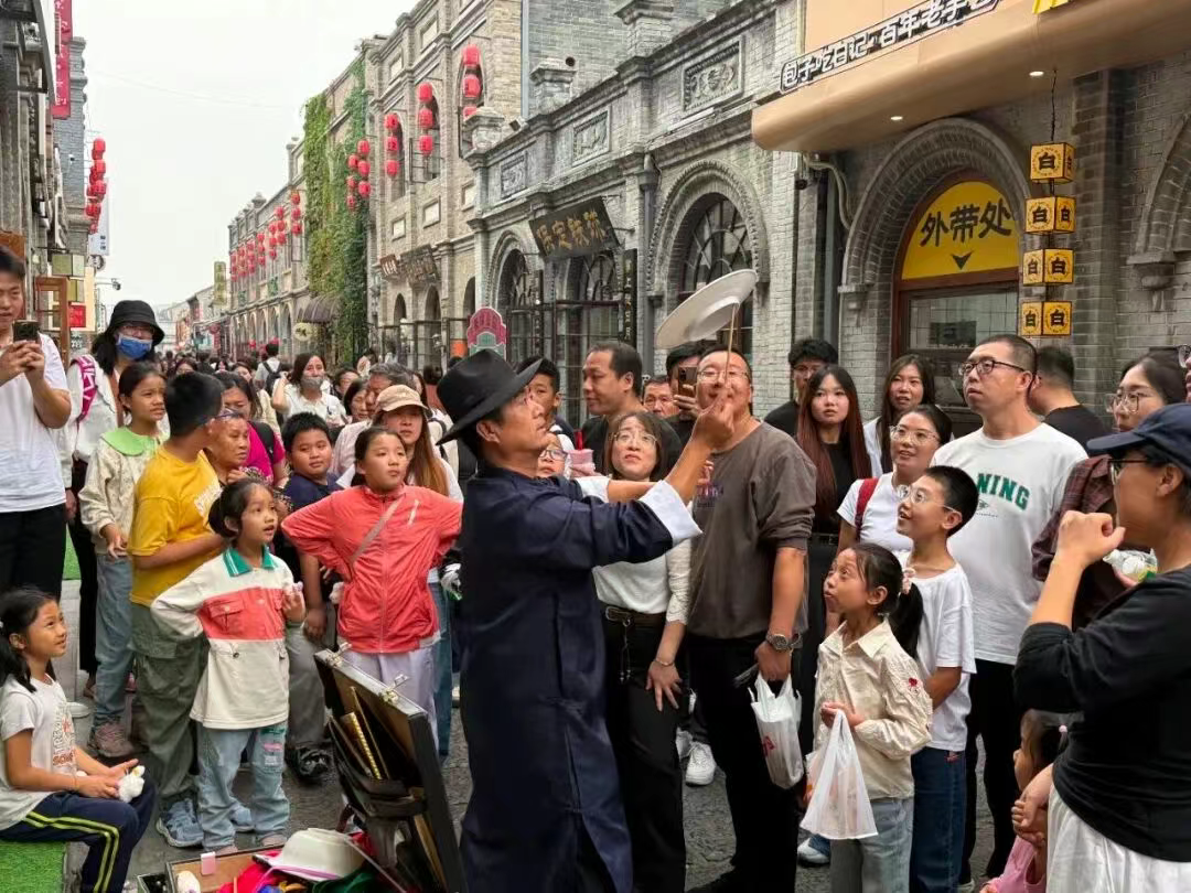 图书馆中秋主题活动、西大街中秋奇妙游、古莲花池夜游活动、主题惠民演出……在双节期间,莲池区文旅市场呈现出多点开花的繁荣景象,累计接待游客达136万人次,有效拉动当地经济增长,总额超过亿元。西大街沉浸体验游吸引各地游客。市文发集团供图