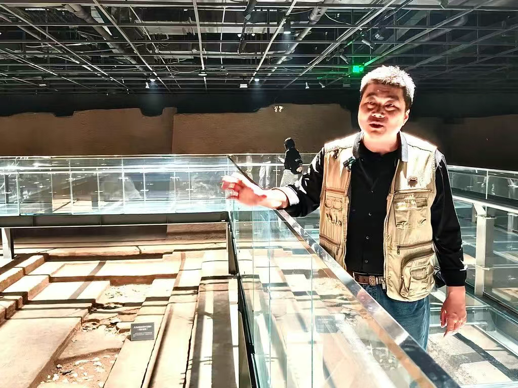 大名府故城考古工作项目负责人任雪岩在考古复原展示区讲解大名府故城发掘过程。崔玉洁摄大名府故城考古工作