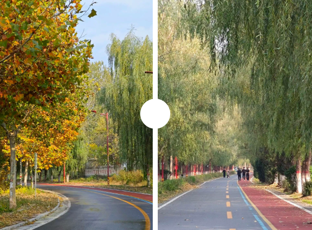 立冬时节的魏县,并非一片萧瑟。走进魏祠公园,仿佛步入了一幅色彩斑斓的画卷。金灿灿的叶子仍在枝头流连,微风拂过便簌簌飘落,铺成一条金黄富有诗意的林间小径。