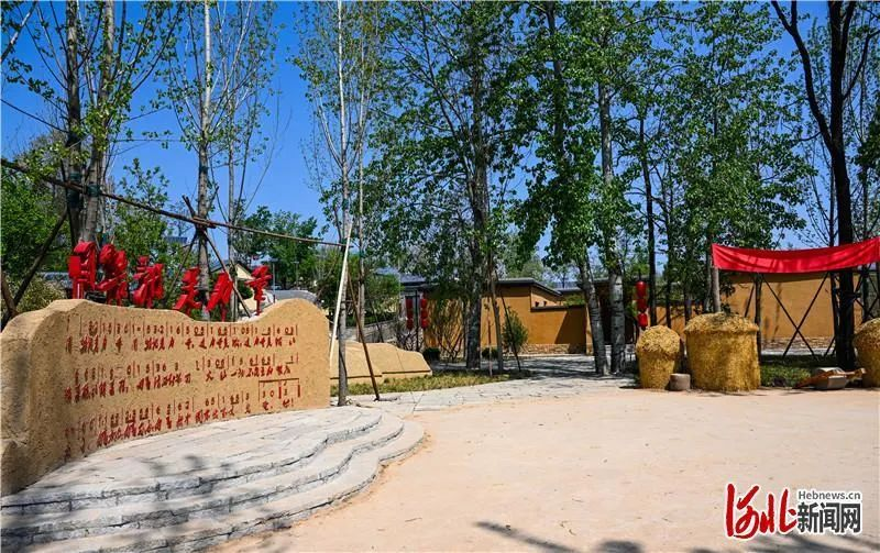 西柏坡镇北庄村,村史纪念馆外的晒麦场写着《团结就是力量》这首歌歌词。这首传唱至今的歌曲,是词作者牧虹趴在北庄村老乡家的屋顶上所写,由西北战地服务团第一次唱响在北庄村的晒麦场。