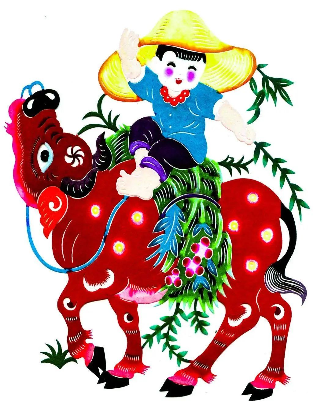以“阴刻为主、阳刻为辅”的点彩剪纸