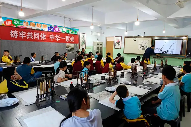 2024年9月,辛集市新城民族学校开展“铸牢共同体 中华一家亲”国画进课堂活动