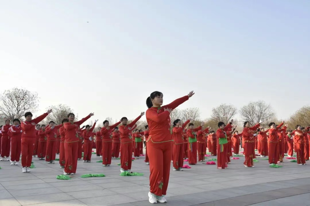 早上九点,活动在激昂的锣鼓声中拉开帷幕。千名舞者整齐排列,伴随着欢快的音乐节奏,翩翩起舞。与普通广场舞不同的是,这套广场舞将成语文化巧妙地融入其中,每个动作都对应着一个成语,如 “胡服骑射”、“围魏救赵” 等,让参与者在锻炼身体的同时,也能感受到中华成语文化的博大精深。