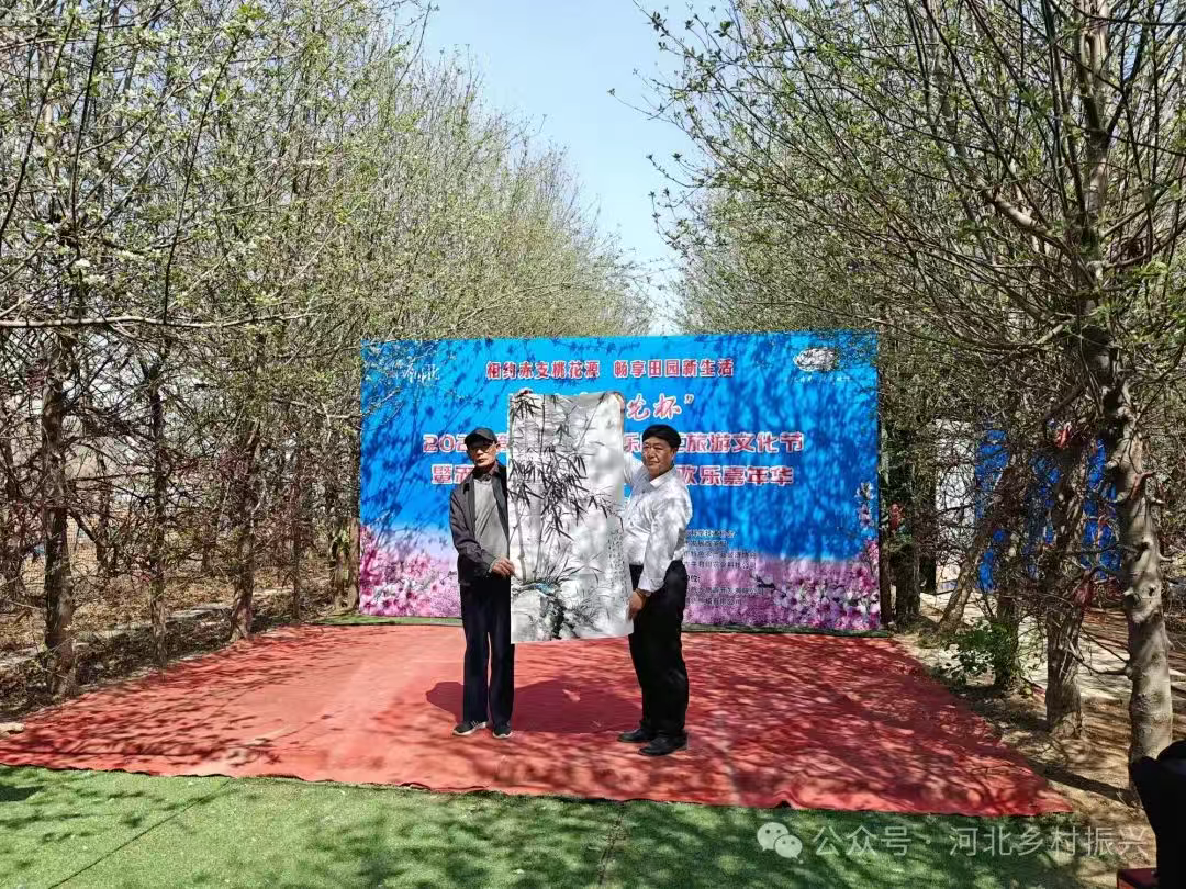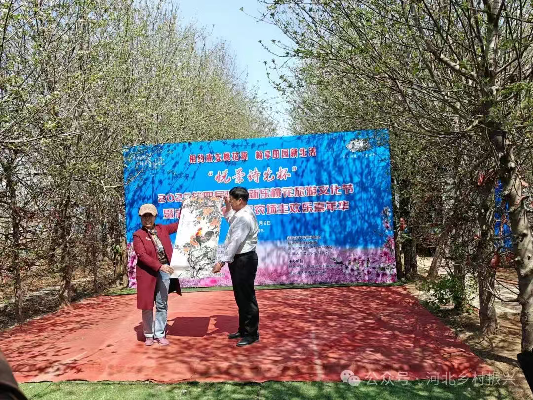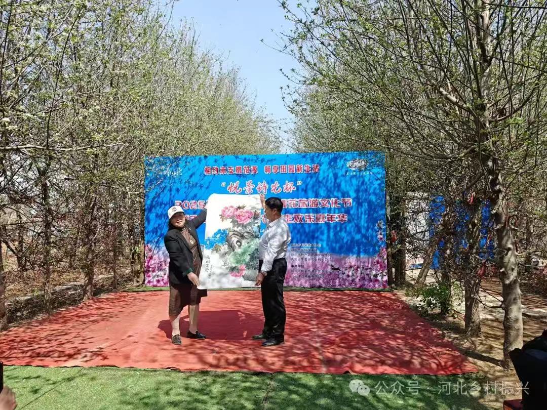 在活动现场,河北省文化名人公益联盟书画院携12位艺术家呈现文化盛宴。常务副院长张三、副院长范新喜、院士李凤梅、闫运来、董广英、刘润香、李芙萍、杜俊敏、孙金荣等名家创作的《桃源春韵》等23幅书画作品赠送给了赤支桃花源公社,将在园区田园科普画廊永久性展出。