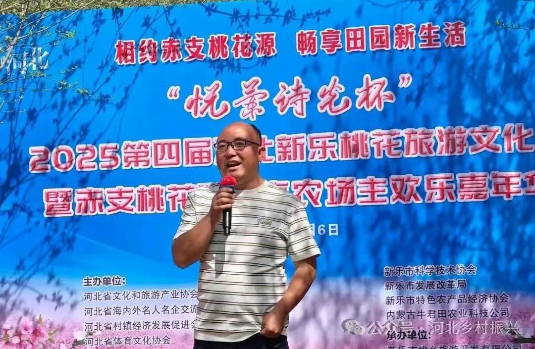 新乐市政协常委、新乐赤支桃花源公社董事长李永朋在致辞中表示,项目通过"共享农场主"模式已带动周边8个村庄实现产业升级,种植沙地有机红薯面积达2000多亩,促进了周边数百名村民就业和致富。 河北省文化和旅游协会品牌推进专业委员会主任王俊昆指出,新乐桃花旅游文化节已经成功举办三届,本届文化节将重点推介8个特色农创品牌,鲜薯生态白酒、纯手工红薯粉条、水果花生、全麦面粉、沙地黄豆、红薯淀粉等特色农产品深受人们欢迎,“赤支桃花源”、“悦兰诗光”品牌的影响力越来越大;一年一度的河北新乐桃花旅游文化节已经成为新乐市的特色文旅品牌活动,带动了周边乡镇村民的文旅消费,吸引了更多的市民参与其中,促进了乡村振兴,为乡村文旅产业发展注入了新动能。