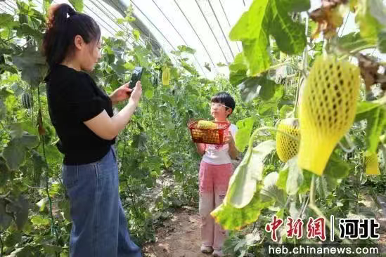 图为在南宫市段芦头镇南张庄村果蔬种植基地的温室大棚里游客正在采摘游玩。 王林 摄