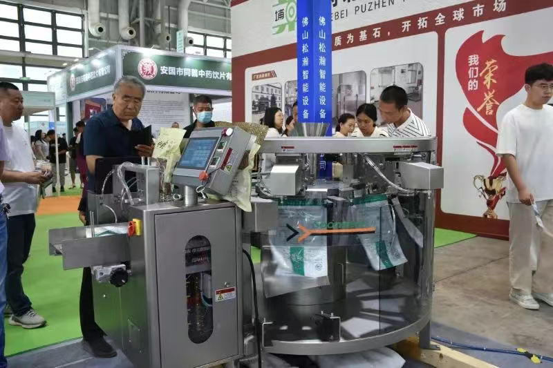 本届药材节以“传承创新、品质前行、融合发展、祁创未来”为主题,立足“国际化、全链条、战略性”发展定位,汇聚中医药领域高端要素资源,着力推动产学研深度融合,为中医药产业高质量发展注入强劲动能。图为第二十七届国际药材节展商进行包装设备演示。张亚德 摄