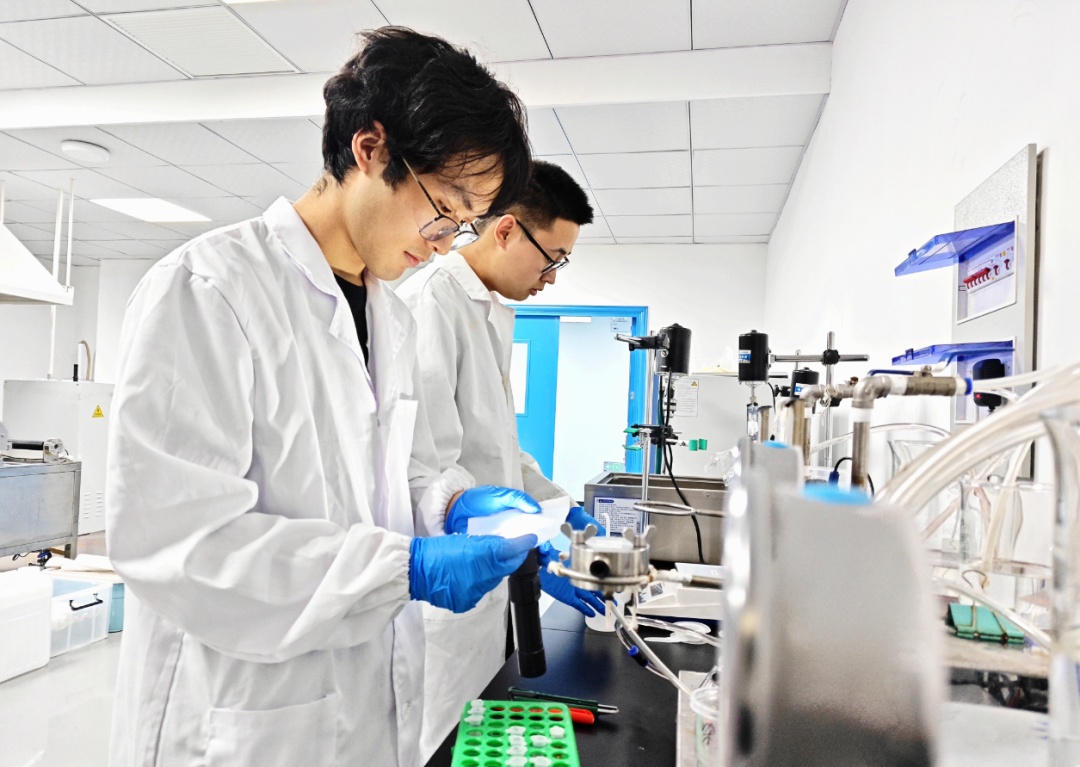 10月15日,天津工业大学沧州研究院的实验室内,科研人员正在进行实验。袁铮 摄