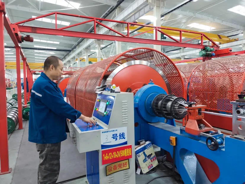 近日,在位于宁晋县贾家口镇高端智能制造产业园区的泽楷线缆河北有限公司各生产环节开足马力、有序衔接。“投产以来,我们的订单供不应求。”企业负责人翟金柱说,园区内上下游企业聚集,能最大限度降低用工成本、运输成本、库存成本,产能提高了30%。位于宁晋县贾家口镇高端智能制造产业园区的泽楷线缆河北有限公司内,工人正在操作框绞机绞丝。朱丽娜摄