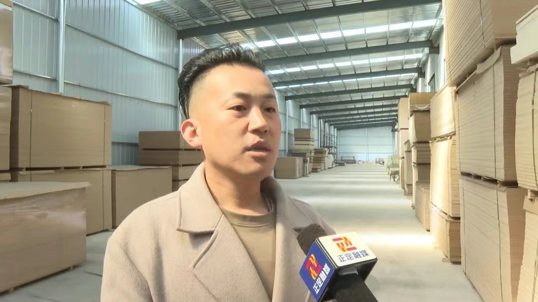 在位于南岗镇的石家庄尚恒木业有限公司生产车间,压切、降温、除尘、码垛,一条日产1500张家具板材的全自动化生产线正在加速运转。ENF级的环保板材整齐摆放在仓库,准备陆续发往京津冀周边板材家具市场。