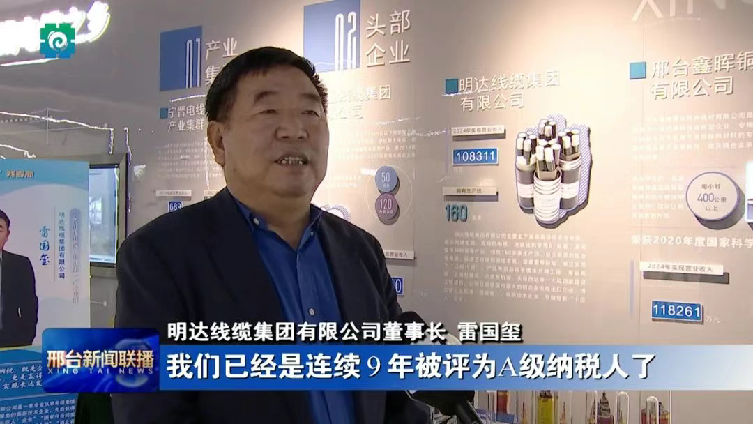 【明达线缆集团有限公司董事长 雷国玺】我们已经是连续9年被评为A级纳税人了,A级纳税人这个“金名片”,让我们在市场竞争中赢得了客户信赖,为企业发展注入了强劲动力。