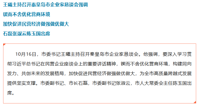 王曦主持召开秦皇岛市企业家恳谈会